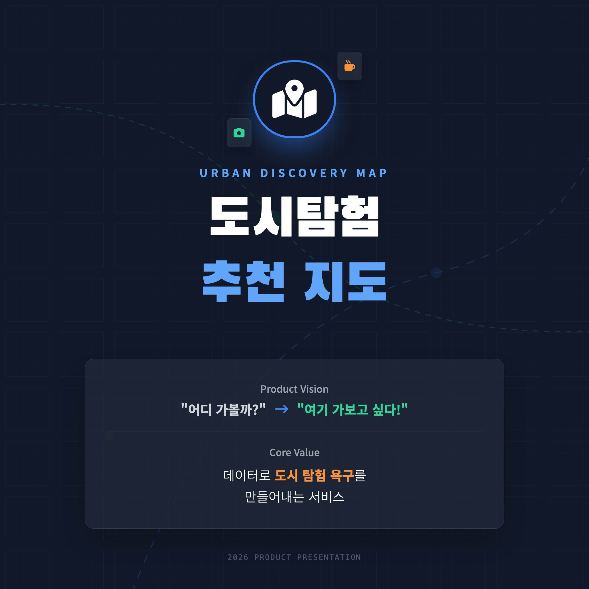서비스 기획 배경서울에 살고 있지만, 막상 서울을 잘 안다고 말하기는 어려운 것 같다. 주로 다니는 동네만 계속 반복하게 되고, 새로운 곳을 찾아가려면 매번 검색부터 다시 해야 한다.가끔은 다른 동네에서 시간을 보내보고 싶다는 생각이 들지만, 어디를 가야 할지 기준이 없어서 결국 익숙한 곳으로 돌아오게 된다.여러 동네를 돌아다니다 보니, 괜찮았던 장소들이 조금씩 쌓이기 시작했다. 그런데 이걸 체계적으로 정리하거나 다시 활용하기가 쉽지 않았다. 지도에 저장은 해두지만, 그게 나의 취향이나 경험과 연결되지는 않는 느낌이었다.그래서 단순히 장소를 저장하는 걸 넘어서, 내가 좋아하는 장소들을 모아보고 그걸 기반으로 “다음에는 어디를 가볼지”까지 이어주는 서비스가 있으면 좋겠다고 생각했다.이 프로젝트는..